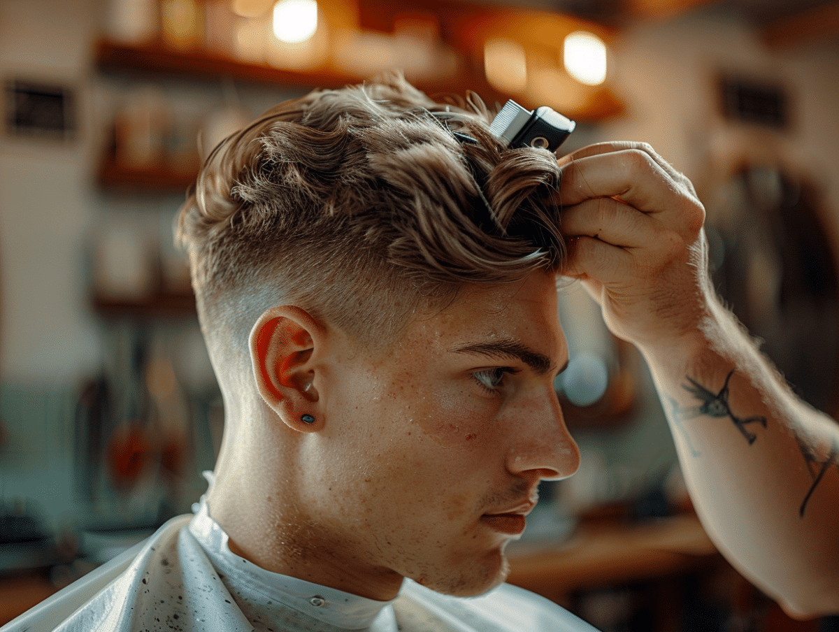 L’expertise réside dans le passage subtil d’une longueur à l’autre sans laisser de traces visibles. Pour cela, variez les hauteurs de coupe et ajustez l’angle de la tondeuse avec minutie. Les professionnels du cheveu savent qu’un bon dégradé à blanc ne souffre d’aucune approximation. N’hésitez pas à effectuer plusieurs passages pour un résultat impeccable. La coupe buzz cut peut être combinée avec le skin fade pour un look contemporain et épuré. Dans ce cas, tenez compte de la densité capillaire pour ajuster le dégradé. Un rasoir de précision intervient ensuite pour parfaire les contours et offrir une finition impeccable. Cet outil est essentiel pour effacer toute démarcation résiduelle et assurer une transition en douceur vers la peau. Le zero fade, variation ultime du dégradé à blanc, requiert un savoir-faire précis et un œil averti. Cette technique consiste à réduire la longueur des cheveux jusqu’à ce qu’ils se fondent littéralement avec la peau. Pour maintenir cette esthétique, l’entretien régulier par un coiffeur certifié est recommandé. Suivez ces directives techniques et votre dégradé à blanc se distinguera par sa précision et sa modernité.