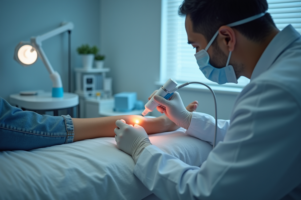 Le traitement commence par une consultation pour évaluer les varicosités et déterminer le type de laser adapté. Une séance laser typique dure entre 15 et 30 minutes selon la zone à traiter. Pendant la séance, le laser émet des impulsions lumineuses pénétrant la peau pour cibler les vaisseaux dilatés. La sensation peut être comparée à un léger pincement, suivi d’une chaleur localisée.